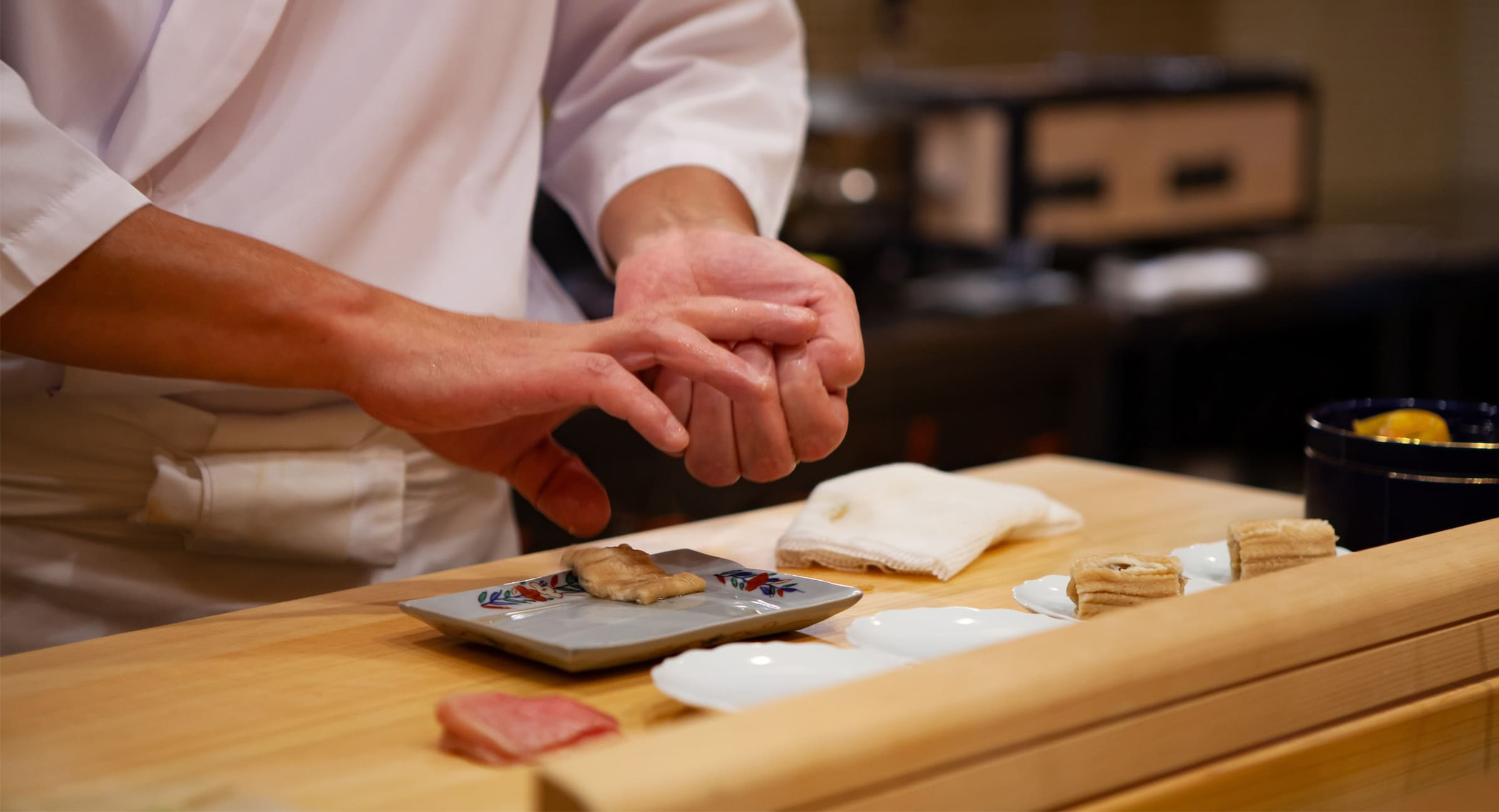 私たち寿司職人は 素材を最大限に活かすため 握り方にもこだわっています